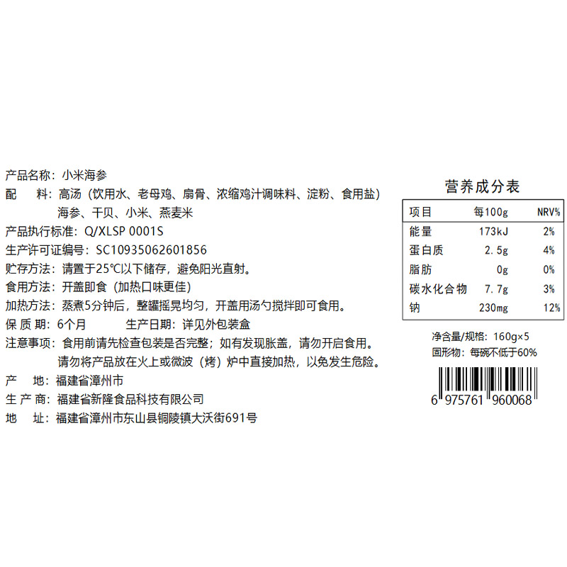160g*5Nama Produk: Teripang Kalengan dengan Millet