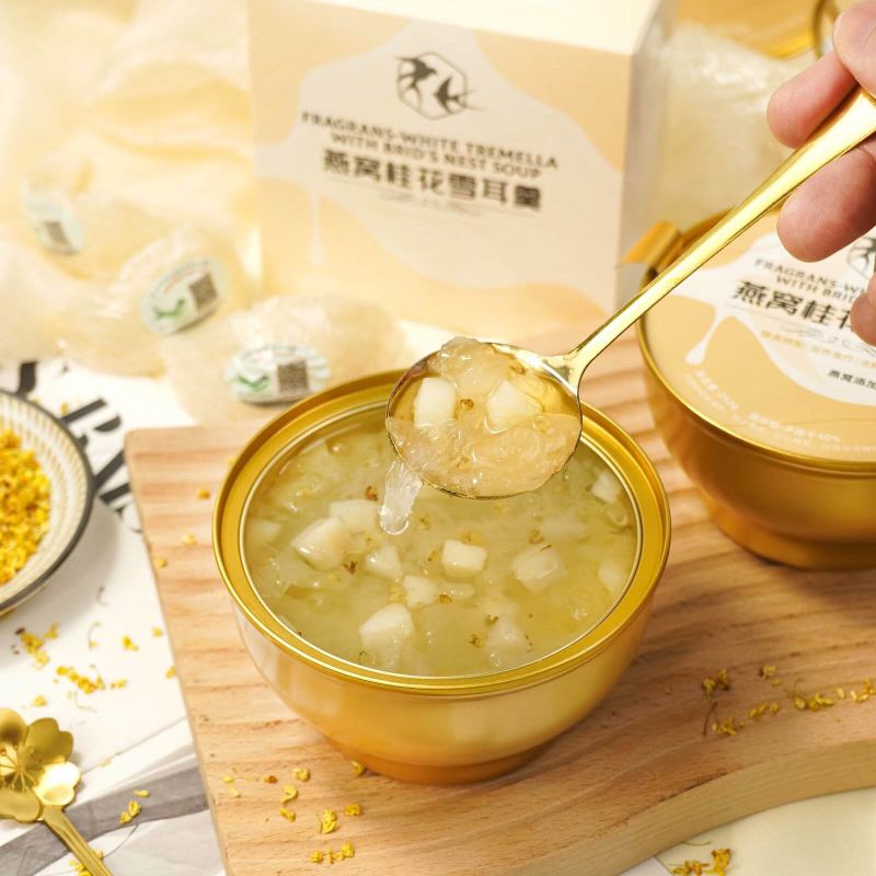 Fragrans White Tremella dengan Sup Sarang Burung memadukan berbagai bahan berkualitas tinggi. Ini bukan hanya kelezatan yang lezat, tetapi juga produk bergizi dan bergizi, kombinasi sempurna antara kelezatan dan kesehatan.